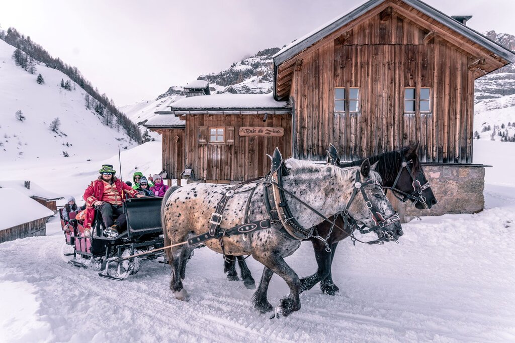Val di Fassa is wrapped in festive magic. Among markets, wooden and ice nativity scenes, towering Christmas trees, and twinkling lights, the snow-covered peaks of Catinaccio, Sassolungo, and Pordoi frame ancient traditions and enchanting celebrations. On 6 December, St Nicholas, pursued by the fearsome "Krampus", hands out sweets to well-behaved children, while on Christmas Day, Father Christmas meets the little ones in the village squares. New Year's Eve is celebrated under the stars, and on 5 and 6 January, the "Befana", a sweet old witch, makes her appearance. On Epiphany, the "Trei Rees" (the Three Kings) sing the ancient "Songs of the Star", and the tradition of blessing homes, barns, and stables is renewed. Even the animals are blessed, for it's said that on the twelfth night, they gain the power of speech...