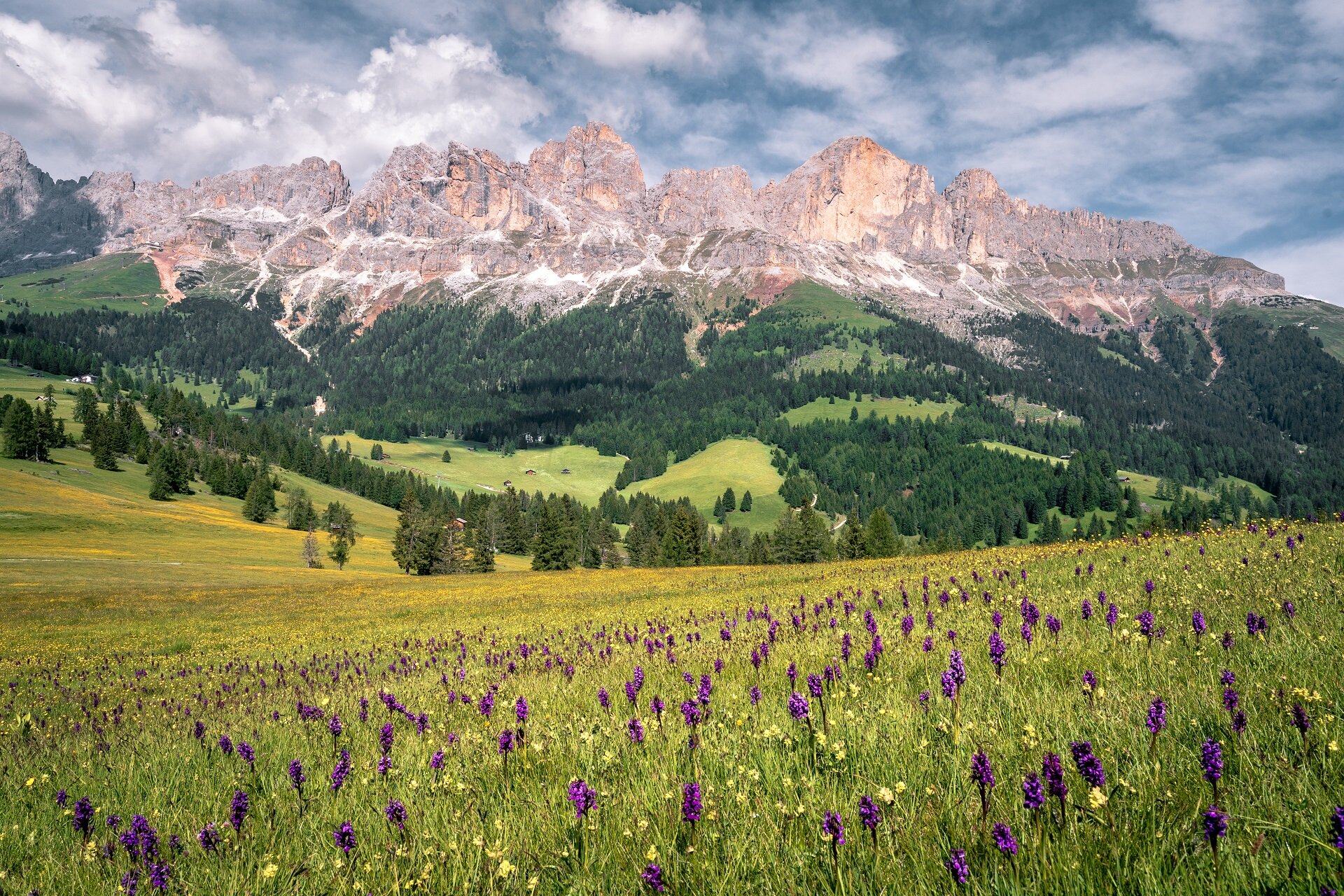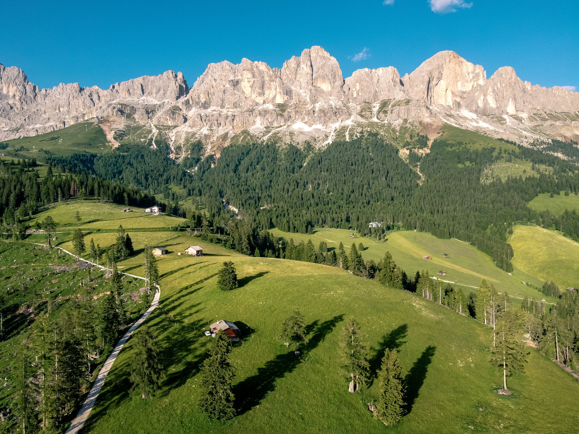 The Costalunga Pass lies on the slopes of the Latemar and at the foot of the Catinaccio natural amphitheatre, surmounted by the Roda di Vael. This pass, which marks the boundary between Trentino and South Tyrol (Alto Adige), is the starting point for many hikes and circular trails thanks to the ski lifts giving easy access to the ultra-modern ski area in winter. It is also known as the Carezza Pass thanks to the nearby Lake Carezza whose turquoise waters reflect the Latemar peaks.