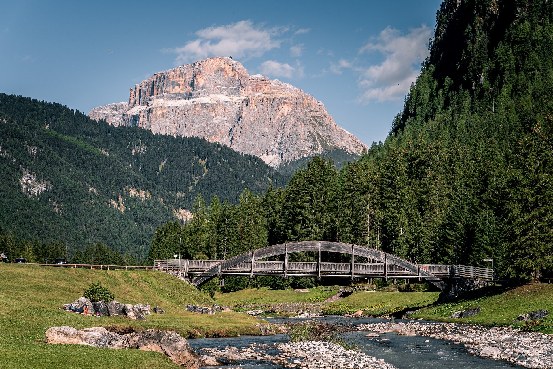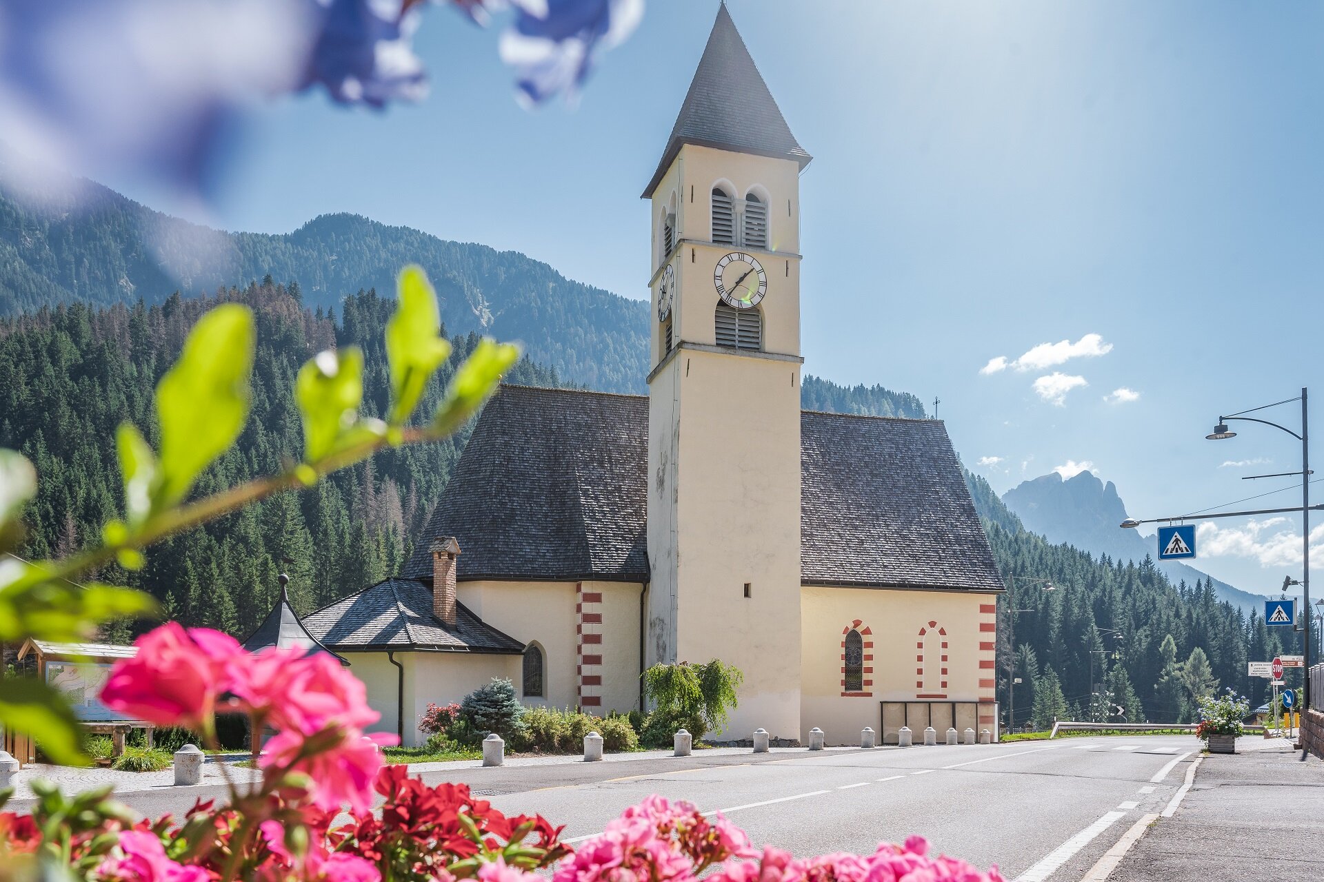The village is set against the rocky backdrop of the Catinaccio d'Antemonia (3002 m), the Cima Dodici (2446 m) and the Col Bel (2436 m).