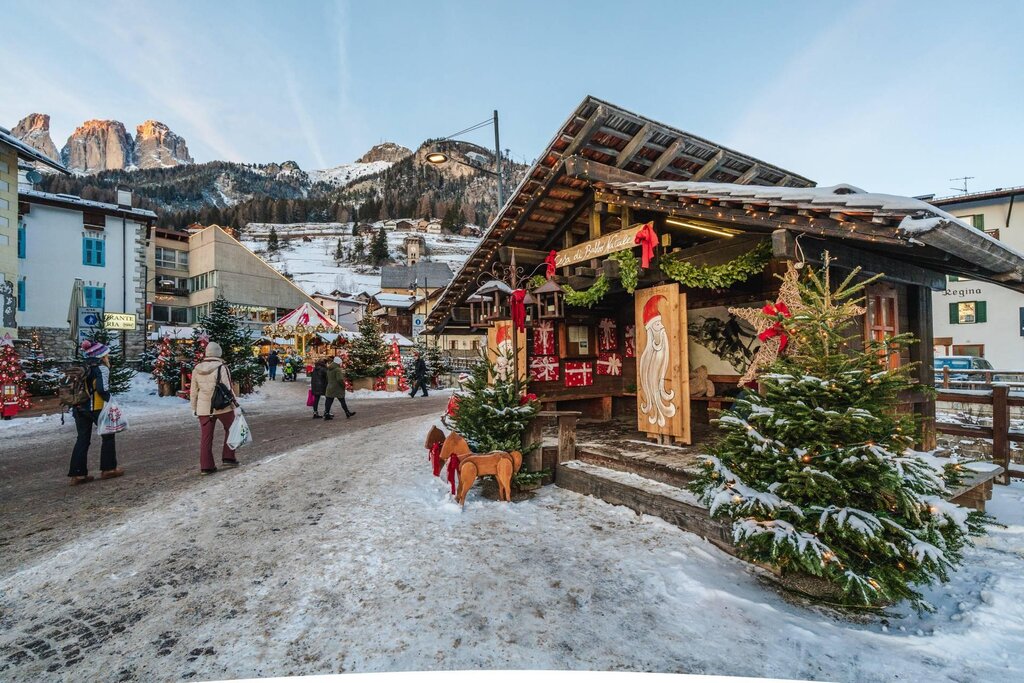 On Friday 8 December, Campitello inaugurates an evocative market for true connoisseurs of Christmas atmospheres, balanced between the poetry of the crib in the square and the enchantment of the Sassolungo in the background. The characteristic little wooden houses, offering handicrafts, typical gastronomic delicacies, and artistic and handicraft products from the Dolomites, are carefully set up along a pleasant pedestrian path leading from "Piaz de Ciampedel" to "Piaz Veie". There is music, there is atmosphere, there is the horse carousel, there is the choreography of the decorations, the illuminations, the majestic tree, the ice fountain and, to warm you up, there is a fragrant hot mulled wine to accompany a tasty bretzel with speck and "Chèr de Fascia" cheese or delicious "fortaes" (typical sweet snail-shaped pancakes). Who knows, strolling among the various stalls, the last-minute gift might jump out at you...