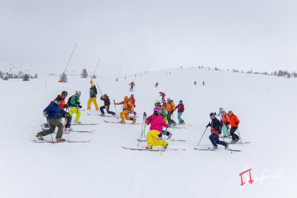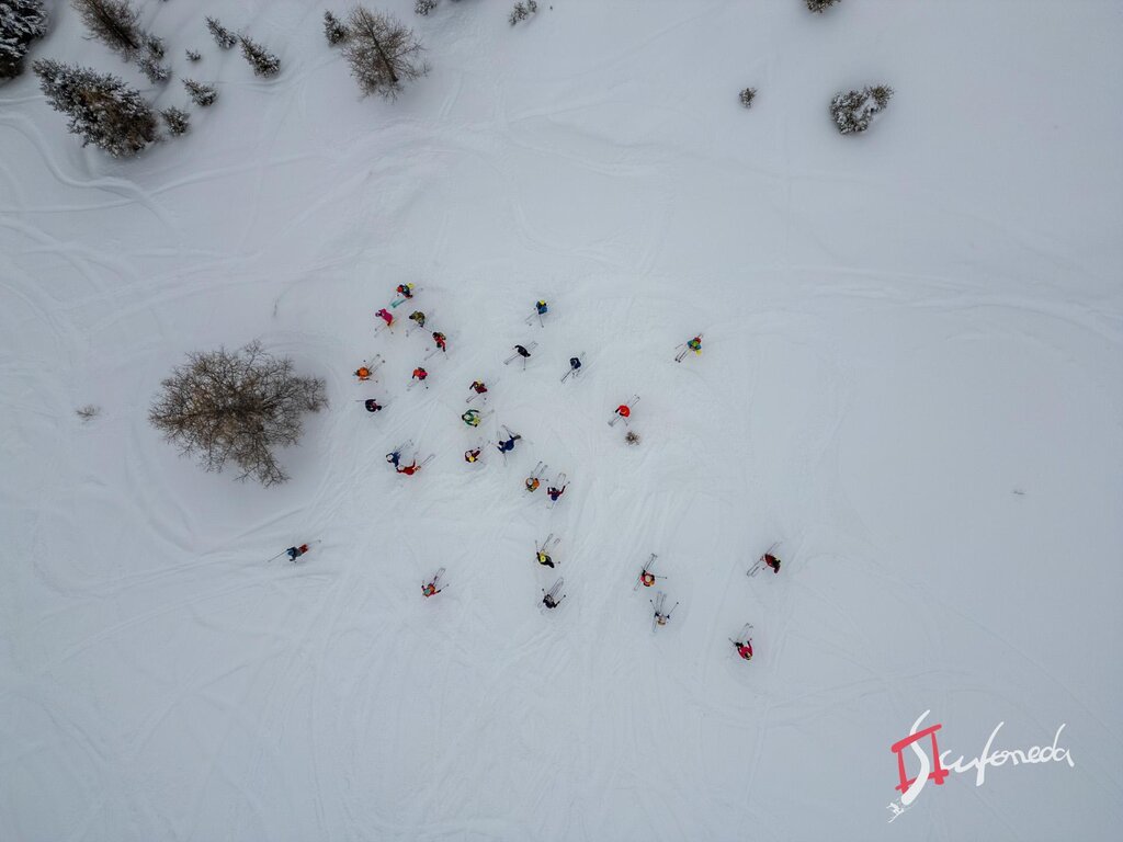 These are the essential information - but there is much more to say about it - about the Scufoneda, the festival now in its 29th edition, which celebrates free-heel skiing. The event, organised by the very active association of the "Scufons del Cogo" in Moena, led by Felice Canclini - The President - has been continuously enriched over time with new content and innovations, attracting around 400 participants over the weekend. This liveliness has contributed to its popularity, even abroad, among telemark enthusiasts, freeride lovers and those who see the mountains as the ideal place to be in contact with nature, where every turn is a return to freedom.