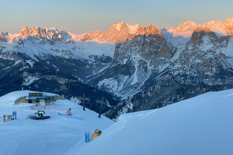 - 5:40 pm – From the terrace of Rifugio Buffaure, watch the “Enrosadira” phenomenon as the Dolomite peaks glow pink and red in the light of the setting sun
