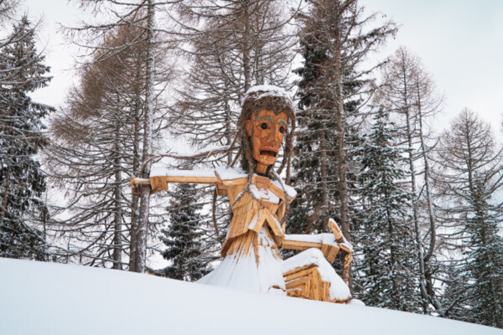 Once there, a short snow walk among land art installations leads you to discover charming corners, perfect for families and children. To round off the experience, the Buffaure Mountain Hut welcomes you with local delicacies to enjoy in the enchanting atmosphere of sunset — a moment filled with nature, art, and flavour.