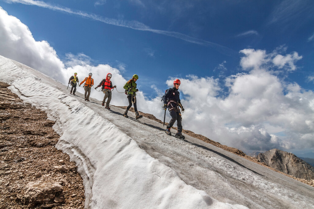 Throughout the year, the Fassa Guides promote mountaineering and hiking activities, group or personalised, to discover the Dolomites. Renato, Bruno, Robert and Walter organise courses, activities and daily outings, for both adults and children, designed to make them live, in safety, unique experiences on rock faces. You can participate in: hiking, trekking from hut to hut, rock courses, mountaineering, climbing, via ferrata, snowshoe walks, ski mountaineering and freeride outings, ice waterfall climbing.