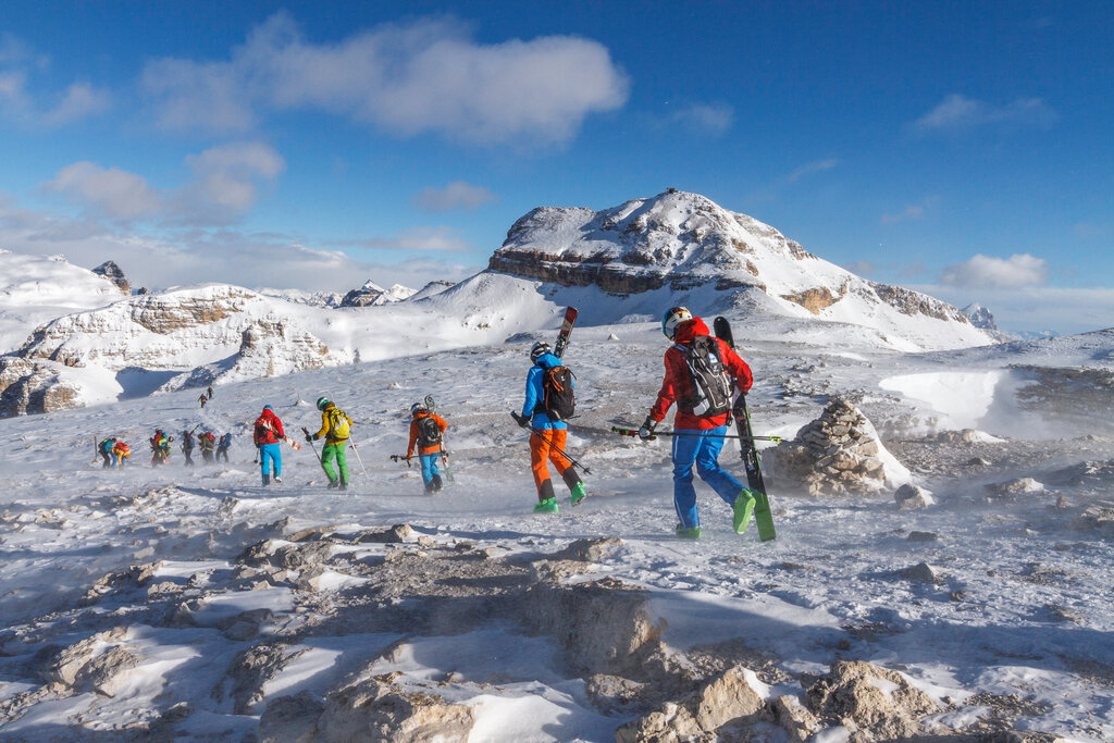 Alpine guides are valuable figures, synonymous with knowledge, safety and reliability. The school is located in Campitello, the first tourist and mountaineering centre in Fassa known since the nineteenth century. The historic group consists exclusively of alpine guides, ski and climbing masters of certified professionalism, with a curriculum of the highest level behind them. In fact, among its members, Bruno Pederiva stands out, with his 8,000 of Cho Oyo, and Tone Valeruz, who has imprinted the footprints of his skis along descents to the limit of the possible.