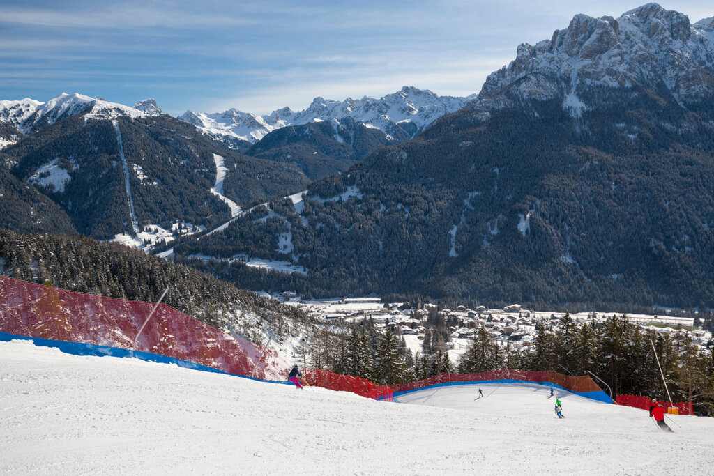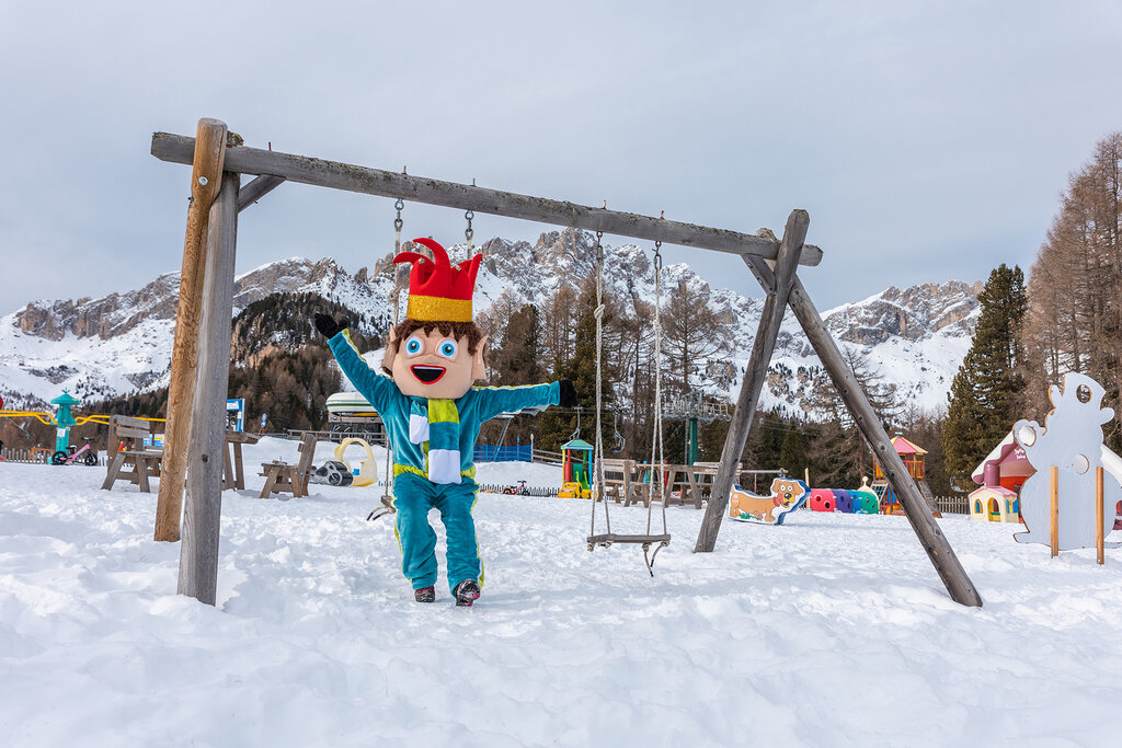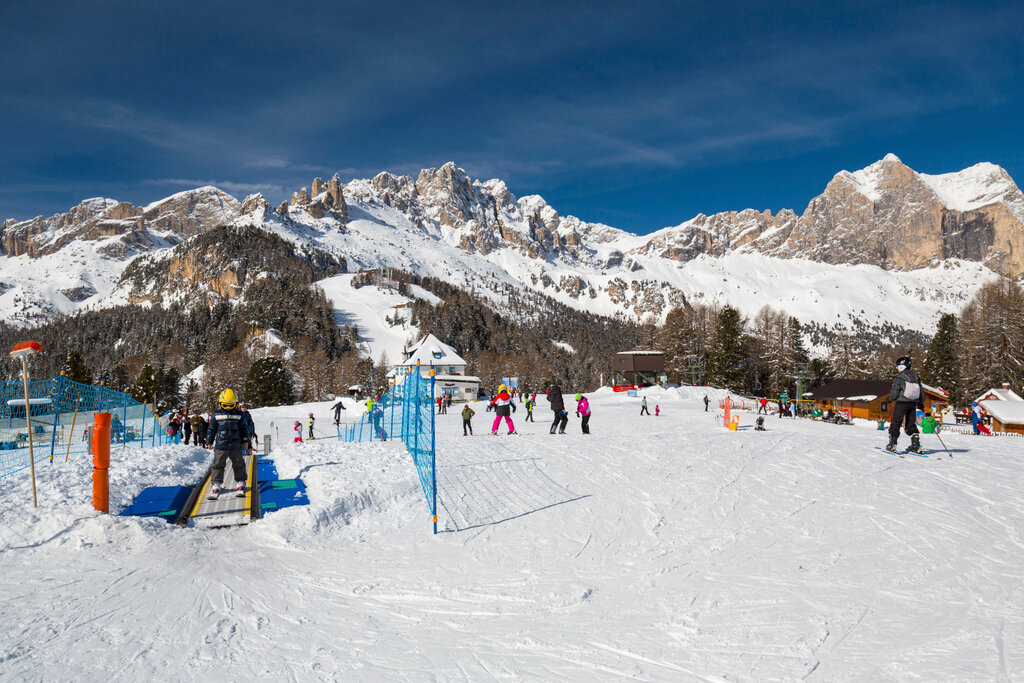 Your first attempts at skiing take place in the ski fields at Ciampedie, in "Fraine" (Pera) and at Carezza Pass, equipped with comfortable treadmills for the ascent. At Ciampedie there is also a beautiful Kinderpark, where children can play and have fun outdoors, among magical castles, slides and swings. Hourly, half-day or full-day admission, weekly (including lunch in the refuge). Entertainment and assistance for children aged 3 and above. Snowmobile excursion (for a fee). The area is also easily accessible for family members/companions who do not ski.