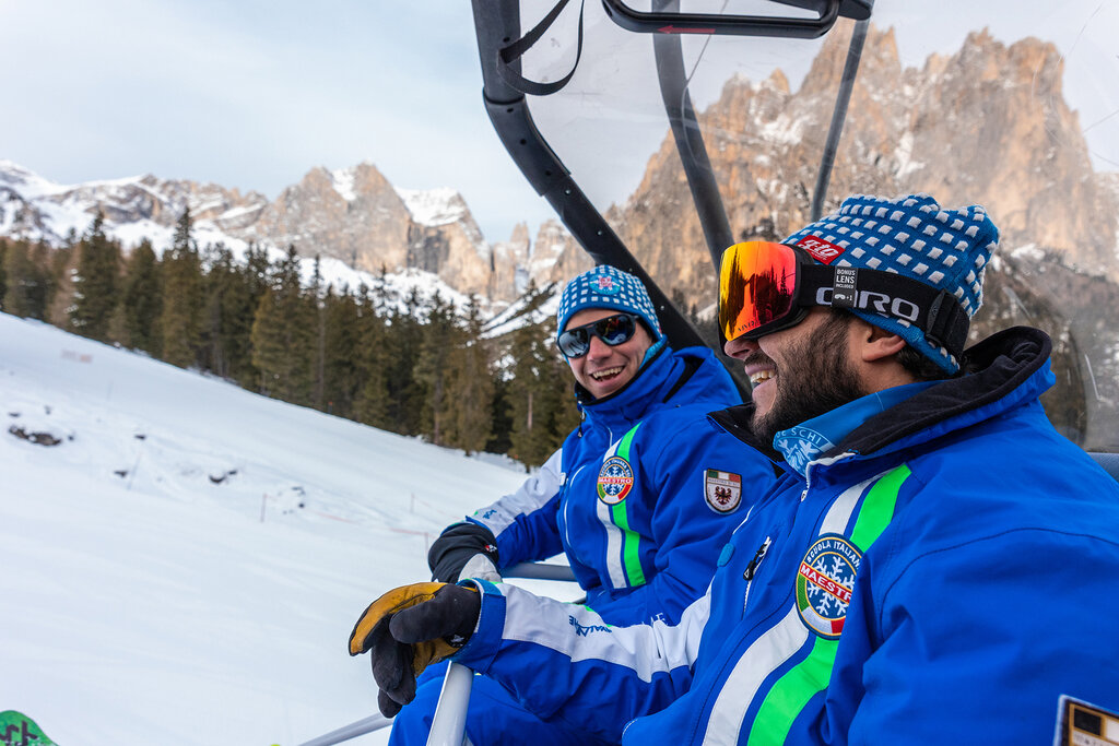 The lessons take place in the Ciampedie ski areas (meeting point at the upstream station of the cable car, phone office +39 0462 763121) and Costalunga Pass (meeting point at the downstream station of the Pra di Tori chairlift, phone office +39 353 3118043). Courses are available in Italian, English, German, French, Spanish and Russian. Helmets are compulsory for everyone.