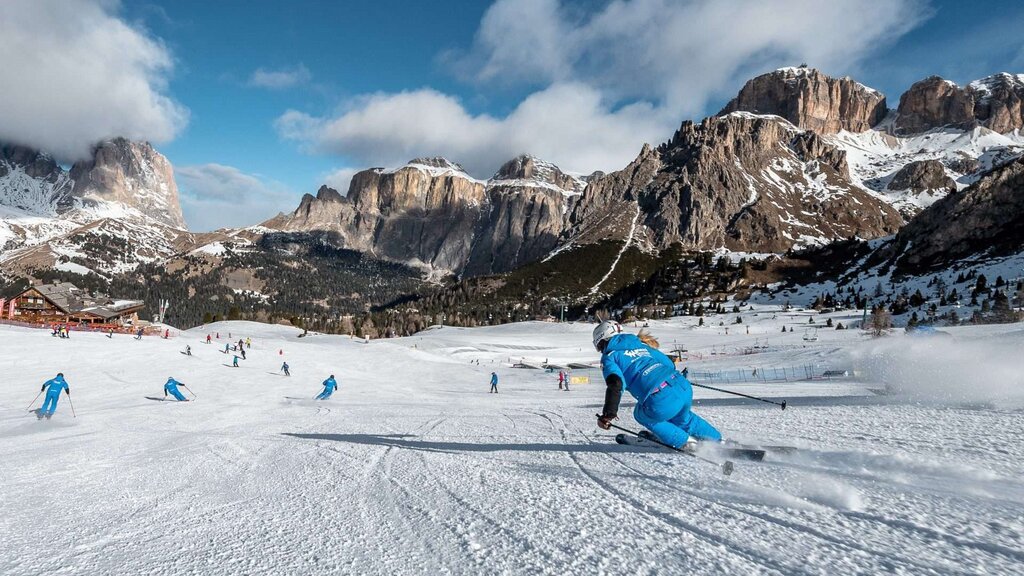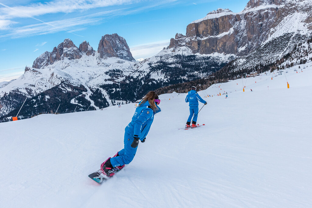 The lessons take place in the ski areas Belvedere (meeting point in Pecol; phone office +39 0462 600142) and Ciampac (meeting point on arrival of the cable car, phone office +39 0462 601539). Courses available in: Italian, English, German, Russian. Helmets are compulsory for everyone.