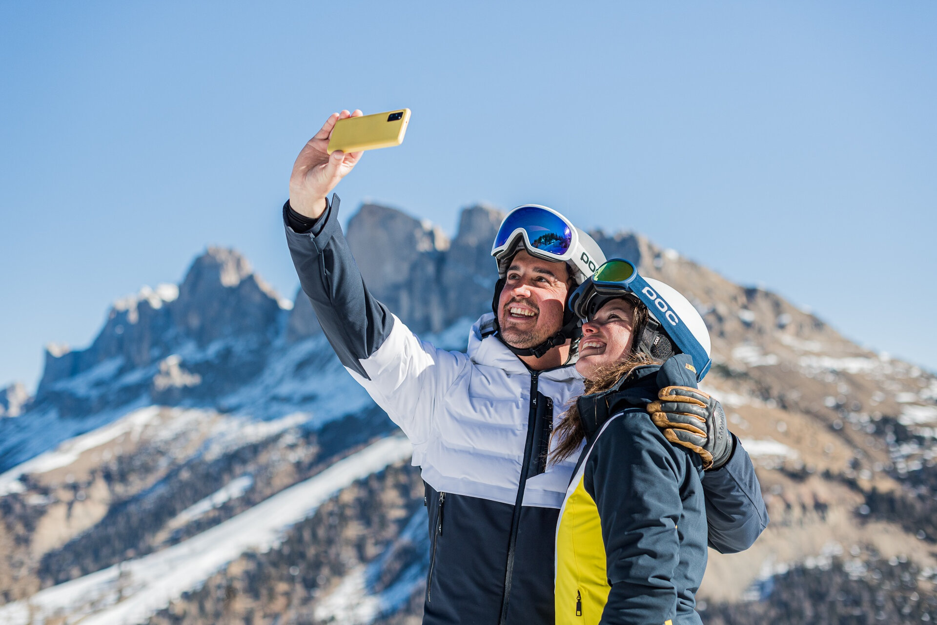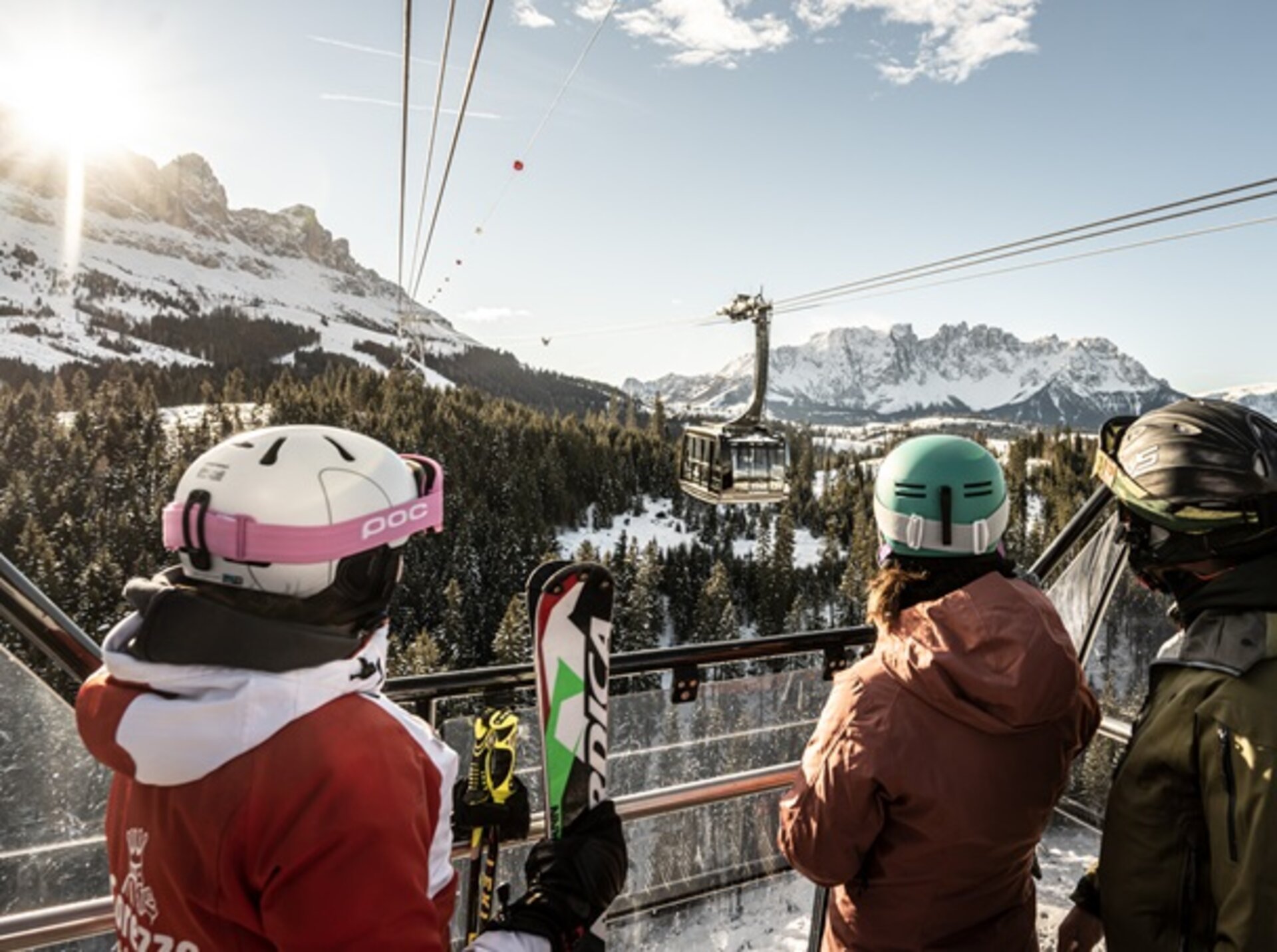 Just one day, 19 lifts, 2 bus transfers and 35 km to chase the sun until sunset over the Rose Garden. The Rosengarten Ronda starts in Tires and connects four valleys: Carezza-Val d'Ega, Val di Fassa, Val Gardena and Alpe di Siusi. A ski tour that offers unique emotions: fast-flowing slopes, the surprise of the underground funicular and the thrill of the cable car that makes you feel like you're on the roof of the Dolomites. Each descent opens up new views of the Catinaccio, until it is tinged with the fiery colours of the "Enrosadira".