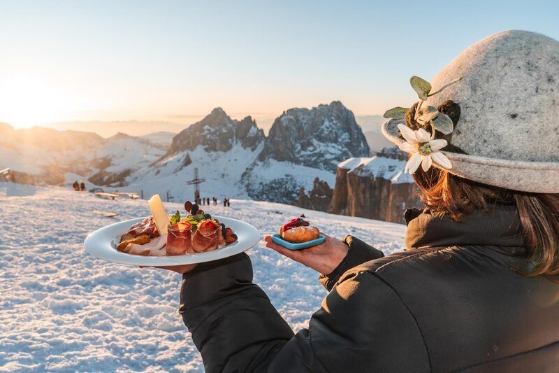 When the snow falls, the Ladin Dolomites reflect the spotlight, and you're the star! The spectacle begins at dawn; enjoy a sumptuous high-altitude breakfast and ski the freshly groomed slopes before the world wakes up. Then, when the sun is high in the sky and reflected in the snow, music starts up that makes you dance even with your skis on. And sunsets are the colour of fire when the Alpenglow illuminates the world's most beautiful mountains with lava-like reflections as you experience the most authentic Ladin vibes. And if you love watching the snow as it falls or when it has just sprinkled its enchantment on village roofs, the valley's folk traditions beckon and invite you to join in the dancing, games and fun. Experiences to grasp – dates to mark in your diary!